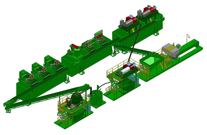 冠能模塊化廢漿處理系統是將不同功能的設備制作成獨立的小模塊,包括鉆屑輸送裝置、干燥篩裝置、泥漿中轉裝置、甩干機支架模塊、撬裝離心機模塊和標準巖屑盒。