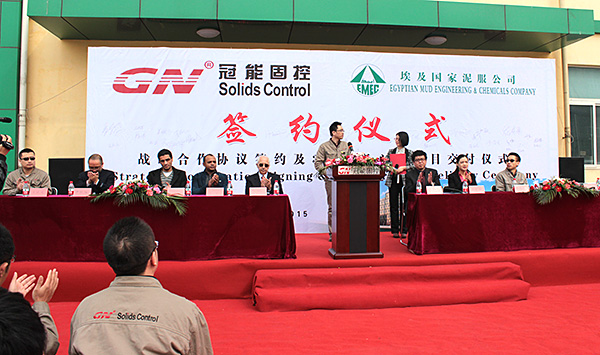 埃及泥服公司的經理阿米爾先生同樣在簽約儀式中發表演講,他說:“埃及國家泥服公司和冠能固控終達成了戰略合作協議。我們將攜手共同努力,制造高質量的產品用于固控和鉆井廢棄物處理服務,占領更大的市場。”