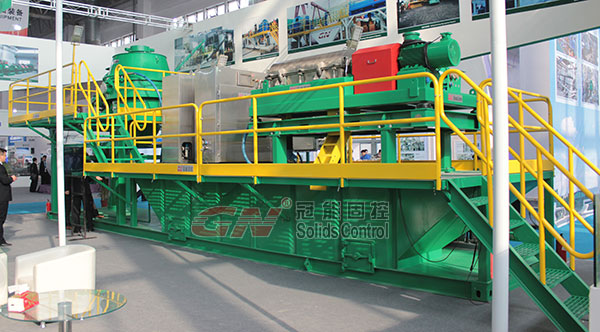 本屆石油展我們推出了一款鉆屑處理系統(tǒng)。該系統(tǒng)包括一個(gè)立式巖屑甩干機(jī),一個(gè)高速離心機(jī),雙螺桿泵和兩個(gè)正壓控制系統(tǒng)。該系統(tǒng)是綜合我們大量客戶的實(shí)際要求而設(shè)計(jì)的標(biāo)準(zhǔn)化鉆屑處理系統(tǒng),可以為客戶處理不同工況下的水基泥漿和油基泥漿。