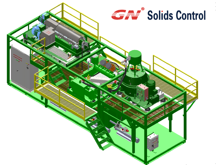對于鉆井液,客戶可能會需要進一步稀釋或絮凝脫水以獲得后續鉆井所需的密度,從高G干燥篩或鉆屑甩干機中排出的固相將輸送到固化系統中進一步處理。