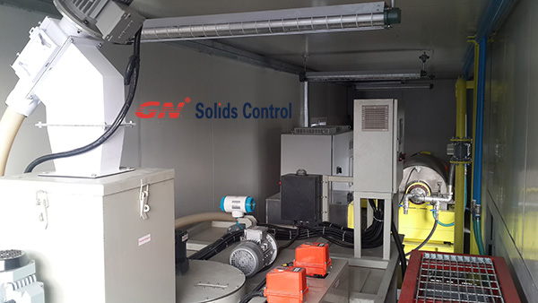 一套包含一臺大轉鼓泥漿離心機的絮凝加藥系統,安裝在40尺的集裝箱內